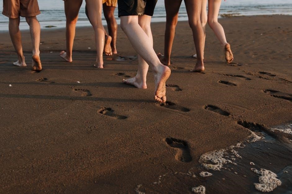 The poem Footprints in the Sand has left an indelible mark on literature and art, inspiring countless creators to explore themes of faith and divine presence. Its poignant imagery has influenced writers to craft similar reflective narratives, while artists have visualized the metaphorical footprints in various mediums. The PDF version has further amplified its reach, making it easily accessible for digital artists and writers to draw inspiration. This widespread influence highlights the poem’s universal appeal and its ability to transcend traditional boundaries, fostering a deeper connection with audiences worldwide.